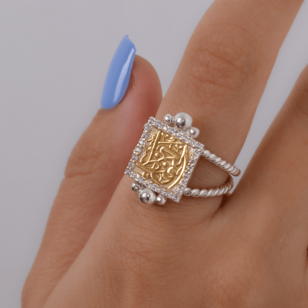 Arabic Zircon Hafez Mix Gold Ring